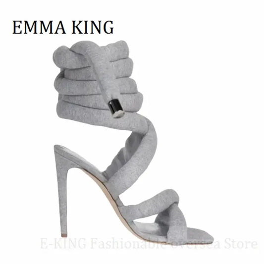 Summer Women Gladiator Sandals Cloth Rope Lace Up Strappy High Heel Sandalias Sexy Square Open Toe Stilettos Sandals Fow Woman's