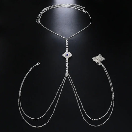 Stonefans Demon Eye Rhinestone Bra Chain Bikini Body Jewelry Festival Accessories Sexy Chest Chain Harness for Women Party Gift