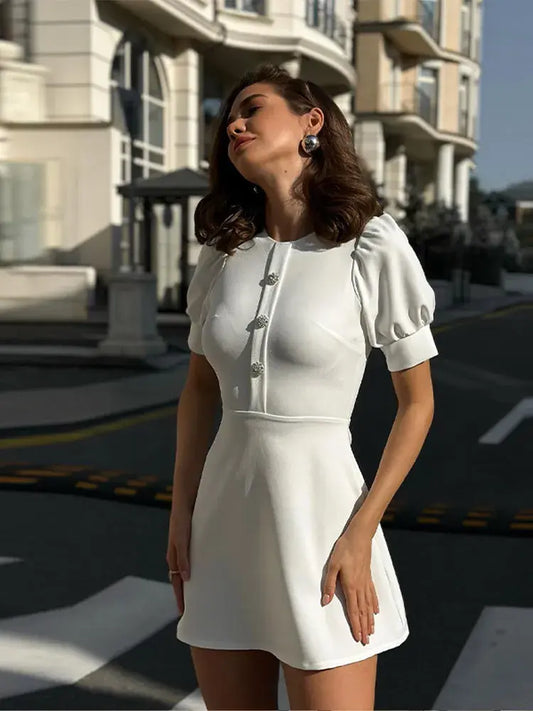 Fashion Slim Mini Dress Women Elegant Doll Collar Long Sleeve Street Female Short Dresses 2024 Summer Party Club Bar Lady Robe