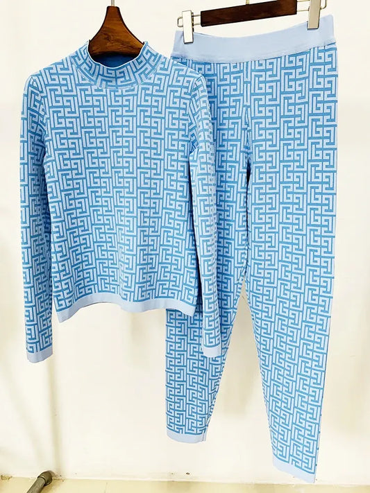 HIGH STREET Newest 2024 Designer Fashion Women Geometric Monogram Jacquard Knit Pullover Sweater
