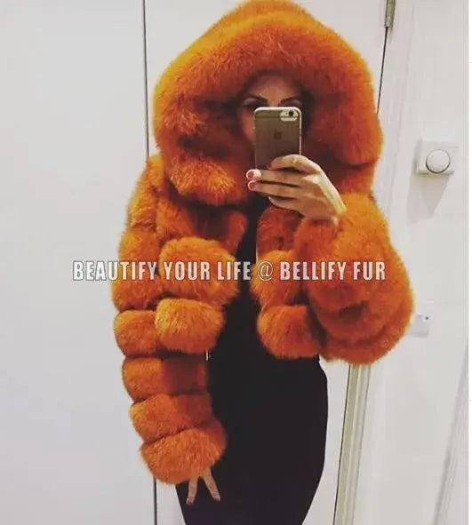 Women Lovely Pink hooded Fashion Jackets Real Big Fur Hooded Cropped Coats