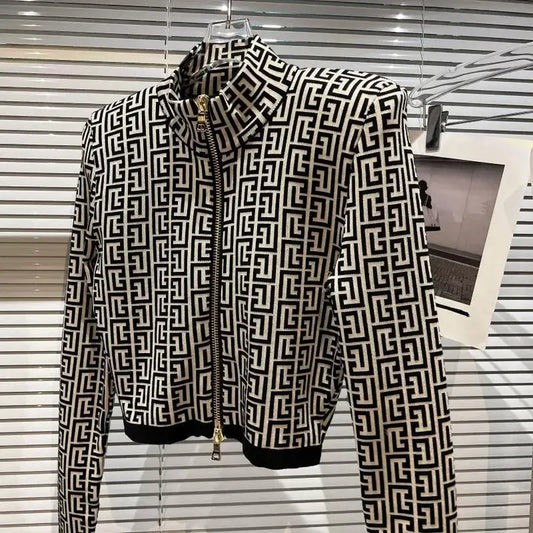 HIGH STREET Newest 2024 Designer Jacket Women's Geometric Jacquard Zip Knitted Jacket
