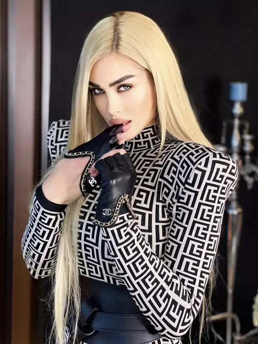Fashion Celebrity Black White Jacquard Lady Set 3 Pieces Set Long Sleeve Rayon Bandage Set