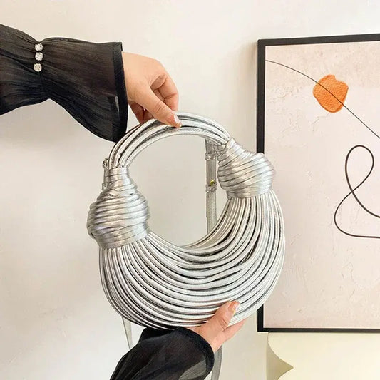 Line Bundle Clutch Gold Bag Women Pu Woven Knotted Gold Handbag Senior Female Clutch Shoulder Bags Luxury Evening Party Bags