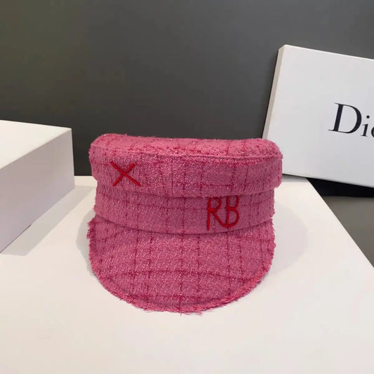 Duffle material octagonal hat autumn and winter new style casual and versatile flat-top peaked hat with face boina mujer