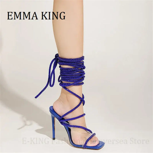 Brand Women Quality Feet Ring Winding Tape Sandals Fashion Walk Show Women's Shoes 2023 Summer New Square Toe High Heels Shoes